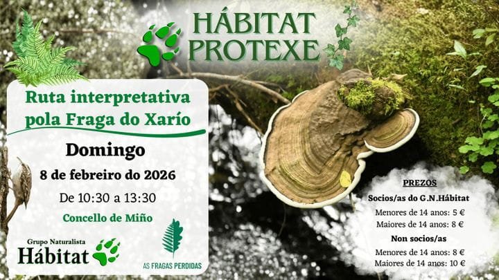 Este domingo 8 de febrero el grupo naturalista Habitat realizará una ruta interpretativa por la Fraga del Xarío, un ejemplo representativo de los bosques gallegos, cada vez más escasas. La actividad se enmarca en el proyecto Bosques Perdidos y consistirá en una ruta circular de unos 3 km al lado del río Xarío, en el que conoceremos la biodiversidad y las principales características de su bosque de ribera.