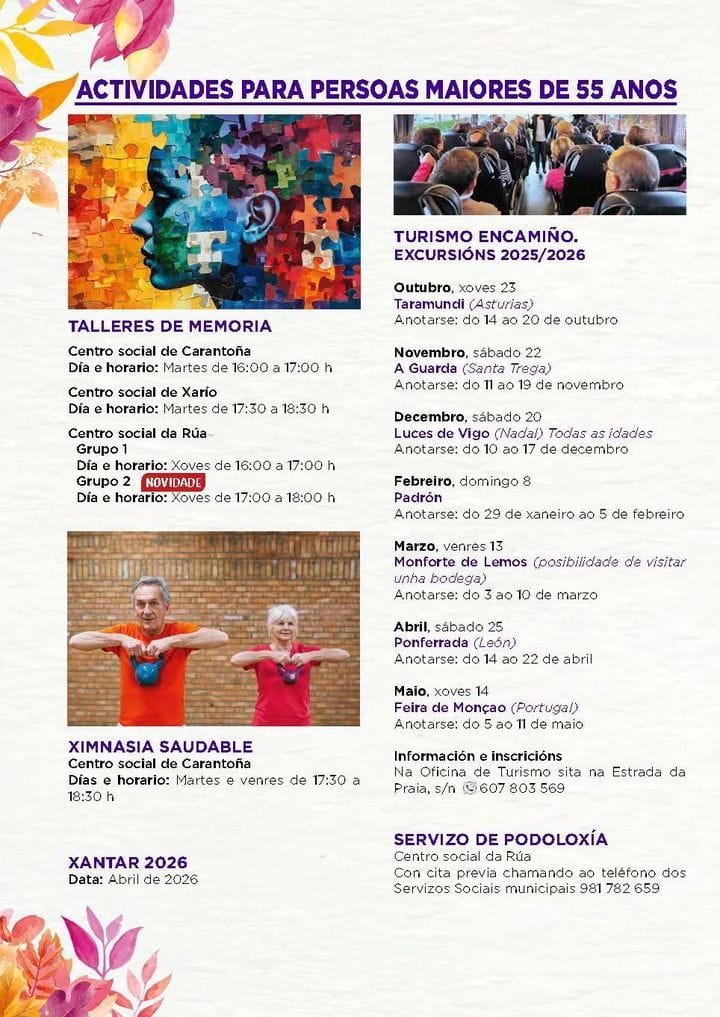 Arrinca o programa Turismo En Camiño 25-26, que ofrece excursións variadas de outubro a mayo para maiores de 55 anos, agás a saída de decembro.